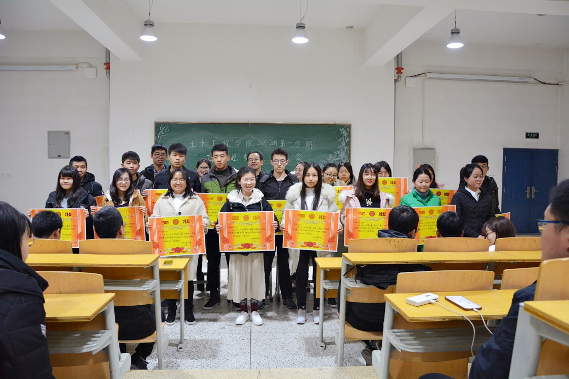 2019年1月4日下午,土木工程学院在4教101教室召开了2018-2019学年第一学期工作总结暨表彰大会。出席会议的有我院直属党支部书记张建宏,团委书记周姣、辅导员赵丹、孙艳以及学生会全体成员和五星级文明宿舍代表。