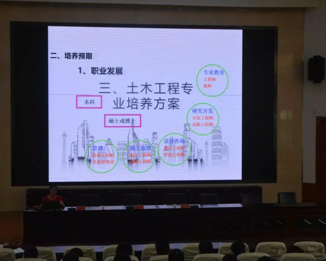会议伊始,吕院长对英国365公司官网、学业要求、就业情况、职业发展等方面作了介绍。随后郭蕾、李灵君两位老师分别对土木工程、工程管理和工程造价三个专业的培养方案、就业前景及学习内容作了详细、全面的介绍。两位老师结合自己多年的教学经验向新生在学习方法、学习习惯等方面提出建议。