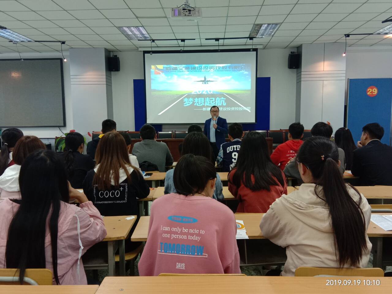 此次招聘会,新疆道桥建设集团以PPT形式播放其公司各类工作任务场景,讲解人员用其专业知识,以老员工和公司骨干的身份告知在场毕业生关于实习期和正式员工的各种待遇,强调力争用最公平公正的方法处理每一件事,对待每一个员工,同时,也希望在职员工能有高度的责任意识——在其位,谋其职!