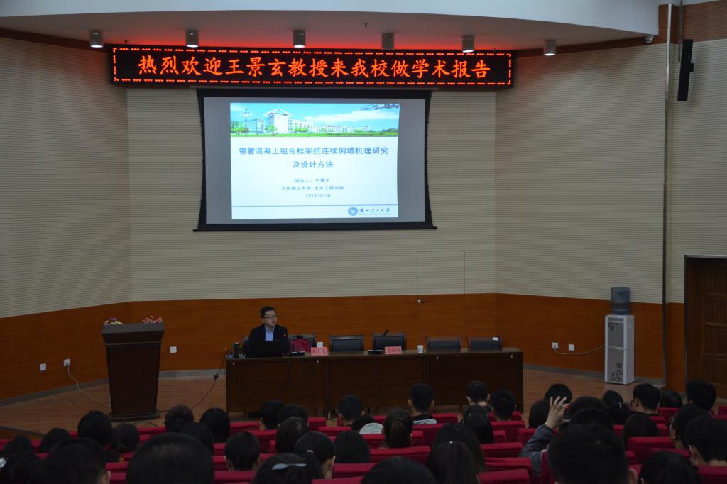 应我院邀请,兰州理工大学王景玄博士于2019年4月1日上午在我校三号报告厅作主题为“钢管混凝土组合框架抗连续倒塌机理研究及设计方法”的学术报告。报告会由土木工程学院副院长吕向明主持,土木工程学院相关专业教师及学生200余人聆听了此次报告。