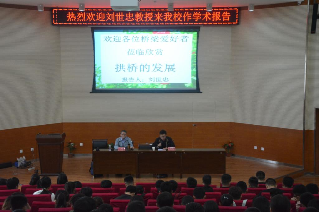 应我院邀请,2019年9月19日下午刘世忠教授来我校三号报告厅作题为《拱桥的发展》的报告。报告会由土木工程学院副院长吕向明主持,土木工程学院相关专业教师及学生300余人聆听了本次报告。