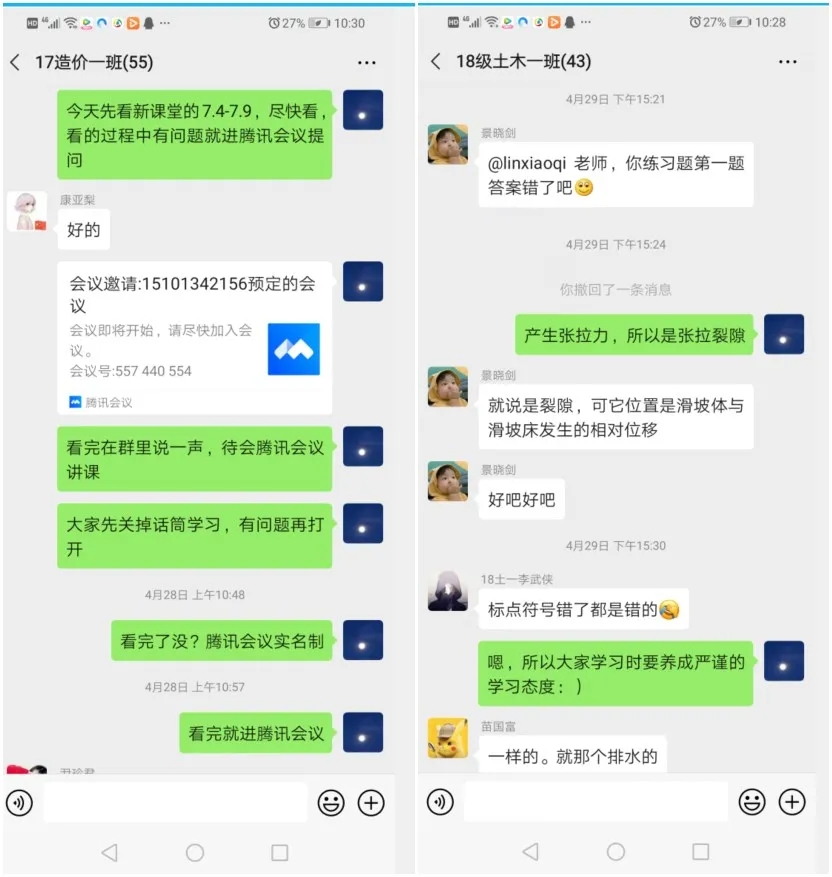 2020年1月23日,大年二十九,由于新冠肺炎影响,武汉封城了!这是一个历史时刻,全国人民从这一天起,全面进入防控新冠肺炎的紧张时期!原以为很快就能结束的疫情,却扰乱了人们收假复工的节奏,开学在即,疫情仍在肆虐,怎么办?无奈之下,教育部决定“停课不停学”,开展线上教学。按照这一要求,我校利用中国大学MOOC平台,全面实行“慕课”教学。经过近半个月的提前准备,全校师生顺利的开始了全新的教学方法——网课。本学期本人主要承担《土力学》、《土力学与地基基础》、《工程地质》等课程的教学任务,均选择相应的中国大学慕课课程作为源课程,建立了异步SPOC在线课程。在线上教学过程中,为了提高教学质量及学生的学习兴趣,我主要采用“慕课+微信群+腾讯会议”的方式进行授课:慕课平台资源是各专家教师的授课视频,以及各种辅助教学功能;微信群用来提醒大家上课签到时间,补充教学资源的发布,疑难问题的答疑,教学图片的发布,各种通知等;腾讯会议主要采用视频会议的形式,在学生看完慕课课程资源后对学习任务的补充讲授。按照原定教学进度,目前教学已过大半,已逐步掌握各种慕课平台教学辅助功能,效果尚可。就慕课堂教学的采用,本人总结以下几点心得体会。