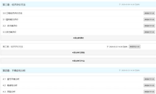 本学期,我承担了“工程经济学”“工程项目管理”两门课程的教学任务,两门课程均根据教学大纲建立了异步spoc在线课程,采用的是中国大学MOOC+微信+QQ群课堂的混合式教学方式。经过10周的教学,逐步适应了线上教学模式,主要有以下心得体会: