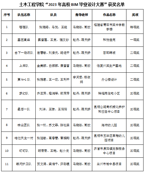 在数字技术迅猛发展的今天,我国建筑业正处在产业数字化、智能化不断转型升级的关键时期。为了在新形势下更好地发展新兴技术,加快建筑行业数字化人才培养,将行业新技术、新需求与传统教学更好的融合,全面培养学生的创新思维和科研能力,培养一批符合现代化发展的应用性人才,土木工程学院积极组织学生参加由国家建筑工程技术研究中心作为指导单位,中国建筑科学研究院有限公司主办,西安建筑科技大学等单位承办的“2023年高校BIM毕业设计大赛”。本次比赛参与人数3200人,提交作品510余份。根据活动规则,经专家技术评分确定,共有135个团队获得奖项。其中我院学子获得特等奖1项,一等奖1项,二等奖3项,三等奖6项。