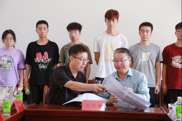 随后双方就校企产学合作、建立学生实习就业基地等内容进行了交流,最终达成协议并举行了签约及揭牌仪式。