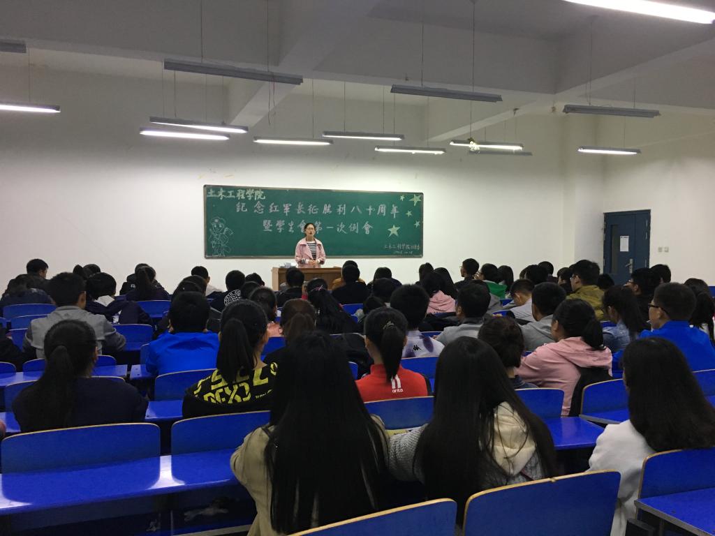 同时,土木工程学院分团委学生会召开了以纪念红军长征胜利八十周年为主题的会议,分团委书记周姣围绕社会主义现代化建设这种新的长征与同学们交流看法,并将长征与军训结合起来畅谈了自己的想法。