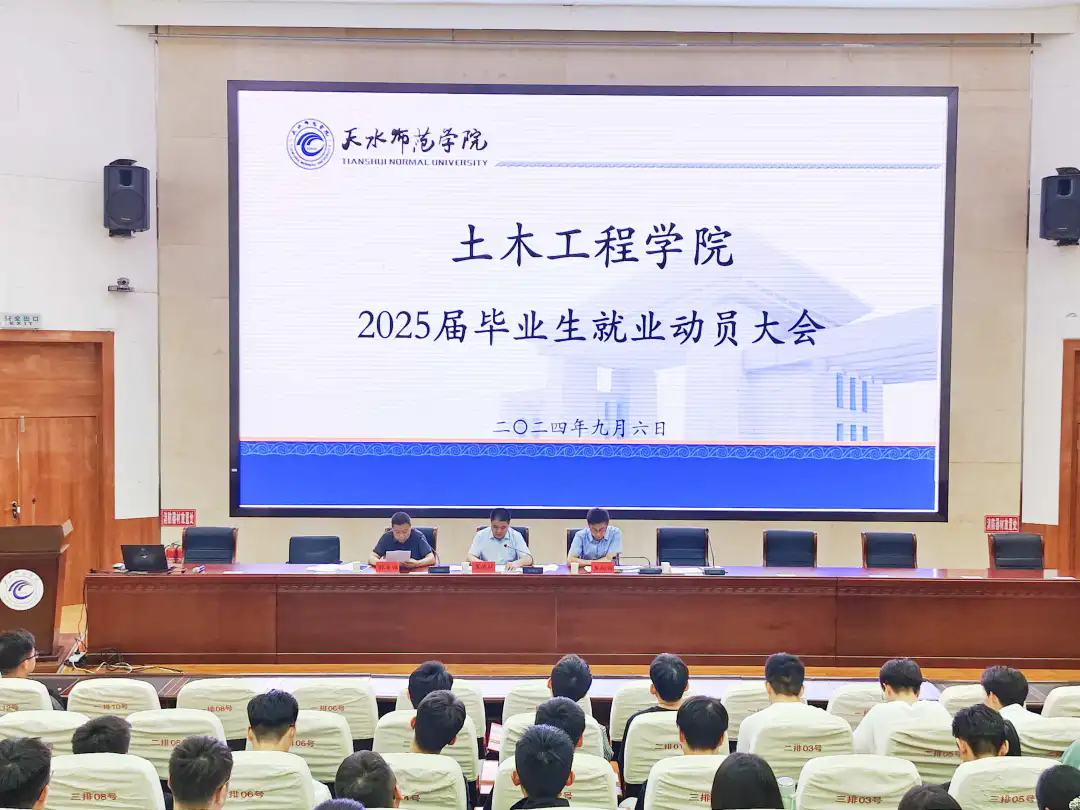 为全面贯彻落实习近平总书记在中共中央政治局第十四次集体学习时强调的“促进高质量充分就业 不断增强广大劳动者的获得感幸福感安全感”的讲话精神和党的二十届三中全会精神,进一步统一思想、明确目标,扎实推进2025届本科毕业生就业工作,土木工程学院于2024年9月6日在二号报告厅召开2025届毕业生就业动员大会。学院领导班子、辅导员、2025届毕业生班主任及全体毕业生参加会议。会议由学院党委副书记、副院长张自福主持,学院党委书记崔德旺、院长吕向明作动员讲话。