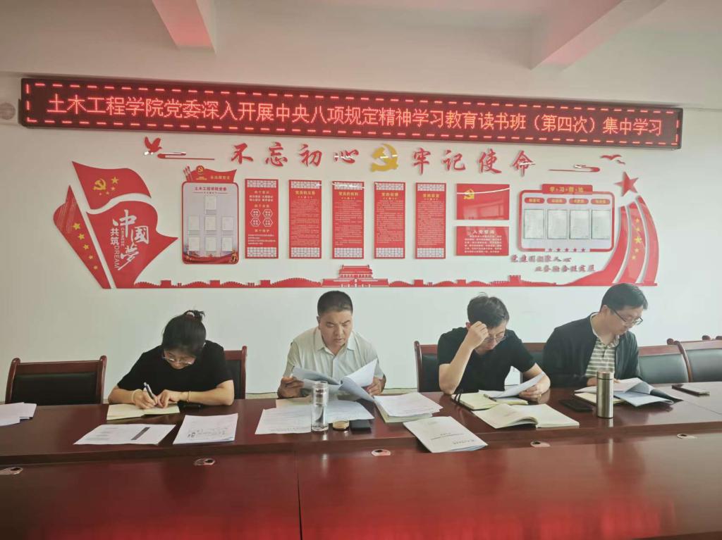 5月29日,土木工程学院党委开展深入贯彻中央八项规定精神学习教育读书班第四次集中学习,学院党委成员、各党支部书记参加。党委书记崔德旺主持学习会议。