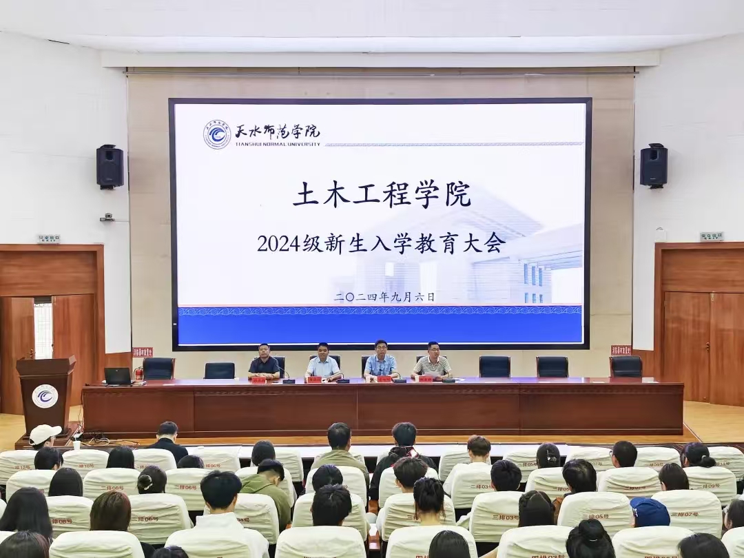 为坚定全体新生对未来大学生活的信心,激励广大青年以奋斗姿态激扬青春,引导新生尽快适应新环境、转变学习方式,科学规划大学生活,树立正确的世界观、人生观和价值观,激发爱国荣校意识,9月6日,土木工程学院组织开展2024级新生入学教育活动。土木工程学院党委书记崔德旺、学院院长吕向明、党委副书记、副院长张自福、副院长魏国强、专业教师代表、新生班主任、学院辅导员及2024级全体新生参加本次活动,本次活动由学院副书记、副院长张自福主持。