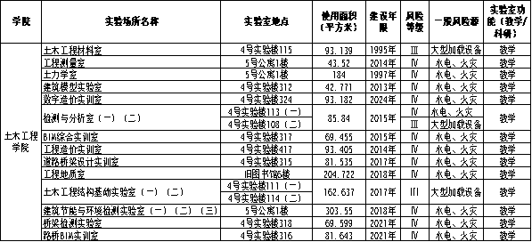 土木工程学院土木工程实验教学中心面积约1600㎡,实验仪器设备台(套)数为1243,设备总值1846万元,拥有各类教学、科研实验室18间。每年承担约25—30门实验课程,覆盖学院所有专业,年实验人数800余人,年实验工作量超过105080人时。土木工程学院土木工程实验教学中心2014年成立至今,已安全运行10年。
