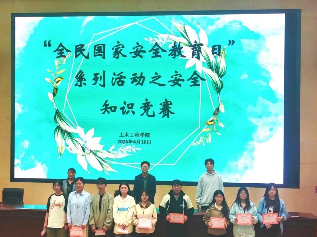 在第九个“国家安全教育日”来临之际,为深入贯彻落实总体国家安全观,增强全民国家安全意识和法治意识,切实做到“人人参与、人人助力”,根据学校《关于开展2024年“全民国家安全教育日”宣传教育周活动的通知》精神,由学生工作处牵头,土木工程学院承办,于2024年4月16日在学校二号报告厅,开展了“全民国家安全教育日”系列活动之安全知识竞赛。